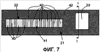 Однако в предпочтительном варианте в отличие от представленной выше детекторной линейки применяется модифицированная детекторная линейка 22, имеющая заметно меньшее количество пикселей 40, отличающихся меньшей собственной площадью и пониженной долей не обладающих фоточувствительностью участков, как это наглядно показано, например, на фиг.7. Преимущество подобной модифицированной детекторной линейки 22 состоит в том, что ее отличает заметно большее отношение “сигнал-шум” по сравнению с обычной детекторной линейкой 22, показанной на фиг.6. В предпочтительном варианте модифицированные детекторные линейки 22 конструктивно выполнены таким образом, чтобы они имели лишь от 10 до 32, наиболее предпочтительно от 10 до 20 отдельных пикселей 40 в подложке 41 или на ней. Размеры отдельных пикселей 40 могут составлять по меньшей мере 0,5×0,5 мм, предпочтительно 0,5×1 мм, наиболее предпочтительно 1×1 мм. Согласно варианту, показанному на фиг.7, детекторная линейка 22 имеет, например, двенадцать пикселей 40 длиной (высотой) 2 мм и шириной 1 мм, при этом ширина не обладающего фоточувствительностью участка 41 между соседними пикселями 40 составляет примерно 50 мкм.