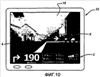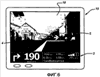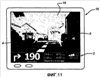 Следует понимать, что можно рассматривать множество альтернатив и вариантов вышеописанных вариантов осуществления. Например, другие элементы, которые указывают наименования дорог, дорожные знаки (например, односторонняя дорога, нет въезда, номер съезда, названия объектов местности и т.п.), ограничения скорости, камеры замера скорости и точки интереса, сохраненные в устройствах 12, 13, 14, 15 памяти, также могут быть наложены поверх видеосигнала – пространственное расположение таких “виртуальных обозначений” в видеокадре может соответствовать элементам реального мира, к которым относятся эти “виртуальные обозначения”. Здесь ограничение скорости (например, текст “30 миль/ч”) может быть наложено так, что оно кажется лежащим или является частью поверхности дороги с ограничением скорости в 30 миль/ч. Иконка, представляющая конкретный дорожный знак, может быть наложена поверх видеопотока так, что она появляется в том месте, в котором практически должен стоять реальный знак.