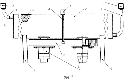 4. Навесное приспособление для пропитки обмоток электродвигателя глубинного насоса изолирующей рабочей жидкостью (лаком и/или компаундом), содержащее наклонные ложементы для корпуса электродвигателя, питательный и мерный бачки, гидравлически связанные с полостью корпуса, отличающееся тем, что приспособление дополнительно снабжено ультразвуковыми излучателями, установленными на подвижном основании, посредством направляющих, снабженных фиксатором, а поверхности излучателей выполнены с кривизной, идентичной кривизне корпуса насоса.