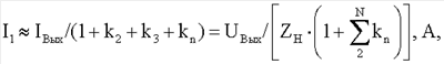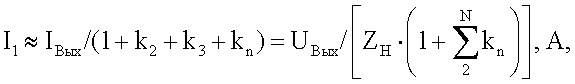 где I1 – выходной ток первого инвертора, А; In – выходной ток n-го инвертора, А; kn – коэффициент передачи по току n-го инвертора; n=2, 3, , N; N – число параллельно соединенных инверторов.