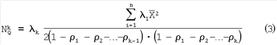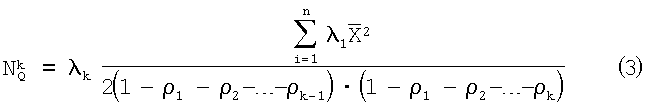 где – количество сообщений в очереди сообщений класса приоритетности k, k – частота поступлений сообщений класса приоритетности k, – средний второй момент времени обслуживания для обработки требований класса k и k – использование системы для класса приоритетности k. В данном случае основное допущение заключается в том, что процесс выделения является неприоритетным. Обозначим С общее количество доступных каналов для прогнозирующего распределителя 48, обеспечиваемых оптимизатором, а М – длину очереди сообщений, определенную по уравнению 4.