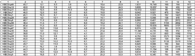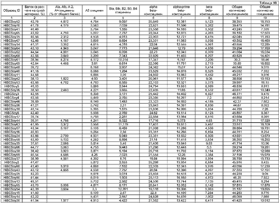 Пример 11 Демонстрация комбинации слабого запаха и высокого содержания В примере описывается комбинация низкоодорирующих свойств с высоким содержанием Анализ на белок проводили следующим образом: восемь соевых семян объединяли и измельчали с использованием САТ Mega-Grinder (SOP Asci-01-0002). Измельченные образцы хранили при 4°С. В анализе ~30мг муки из каждого образца взвешивали и помещали в одну лунку 96-луночного 2 мл титрометрического планшета. Белок экстрагировали в течение 1 часа встряхиванием в 1,0 мл 1 Х Laemmli SDS буфере рН 6,8, содержащем 0,1М дитиотреитола (DTT) в качестве релюктанта. После центрифугирования часть каждого экстракта дополнительно разбавляли в SDS буфере с получением 0,2-0,5 мкг/мкл общего белка, нагревали до 90-100°С в течение 10 минут и охлаждали. 1-2 мкг общего белка из каждого образца помещали с использованием 12-канальной пипетки на 26-зонный 15% Т-градиентный Трис/HCl Criterion гель. В две зоны в каждом из гелей помещали стандарты молекулярной массы и использовали родительский контроль. Гели подвергали электрофорезу до тех пор, пока отслеживающий краситель достигал дна геля за ~1,2 часа, после чего в течение ночи образец окрашивали в коллоидном Coomassie Blue G-250, обесцвечивали в DI воде и проявляли с использованием калиброванного денситометра GS800. Количественное определение проводили с использованием программного обеспечения Bio-Rad Quntity OneTM. Программное обеспечение использовали для определения относительного количества каждой полосы в зоне образца. Процентное количество полос субъединиц глицинина и Соевые композиции, продуцирующие слабый запах с высоким содержанием