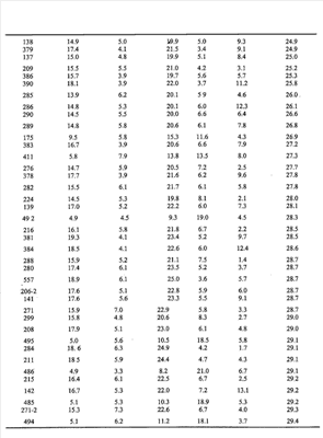 1. Установление влажности сои на значении 10% и выдержка при комнатной температуре. 2. Дробление сои с помощью дробилки. 3. Шелушение дробленой сои с использованием Aspirator. 4. Кондиционирование дробленых и шелушеных образцов сои при 50-60°С с использованием варочного котла. 5. Расслаивание шелушеной сои с использованием плющильного станка для хлопьев. 6. Экстракция соевых хлопьев гексаном. 7. Десольватация обезжиренной соевой муки с образованием хлопьев. 8. Измельчение хлопьев в муку. 9. Добавление воды в подъемный резервуар и нагревание при 50°С и рН 9,0 с использованием 40% NaOH. Добавление обезжиренной соевой муки и перемешивание. Соотношение между водой и соевой мукой 12/1 (мас./мас.). Экстракция в течение 45 минут. 10. Извлечение растворенного соевого белка из экстракционной суспензии с использованием очищенной от шлама дисковой центрифуги (противодавление 58-60 фунт/дюйм2). 11. Установление в осветленном растворе белка рН 4,5 в результате добавления хлористоводородной кислоты (18%) и проведение реакции в течение 30 минут при 45°С. 12. Извлечение осажденного белка с использованием очищенной от шлама дисковой центрифуги. 13. Двукратная промывка белкового коагулята с использованием подкисленной воды (рН 4,5+/-0,1, 30-35°С). Соотношение между количеством промывной воды и уплотненного влажного твердого материала 6:1 (мас./мас.). Извлечение белкового коагулята с использованием очищенной от шлама дисковой центрифуги после каждой промывки (противодавление, 58-60 фунт/дюйм2). 14. Смешивание промытого коагулята с гидроксидом натрия (30%) с установлением рН 6,8 при использовании 30% NaOH и последующая термообработка при 116°С в течение 7,5 секунд. Установление рН 6,8. 15. Нагревание раствора белка до 45-55°С и сушка распылением с использованием воздуха с температурой на входе 204-215°С и температурой на выходе 82-88°С. 16. Определение индекса растворимости азота ингредиентов изолята соевого белка. Суспендирование части образца в воде при перемешивании при 30°С в течение двух часов. Последующее разбавление водой до известного объема. Центрифугирование части экстрагированного образца и анализ аликвоты на содержание белка. Анализ отдельной части образца на общий белок тем же методом. Количество водорастворимого белка рассчитывали в процентах от содержания общего белка, которое пропорционально количеству водорастворимого азота, выраженному в процентах от общего азота. Результаты: Индекс растворимости азота порошкообразного соевого белка (Таблица 18) прямо пропорционален количеству бета-конглицинина в сое, используемой для получения ингредиентов соевого белка: NSI=1,4716 (% бета-конглицинина)+7,4502; R2=0,9975. Уменьшение содержания нерастворимого белка улучшает органолептическое качество (например, сглаженные, более освежающие вкусовые ощущения при разжевывании) пищевых продуктов, сформированных из ингредиентов соевого белка.