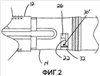 Как лучше всего видно из фиг.1, система 10 ввода линзы по настоящему изобретению, в общем, включает картридж 12 для доставки, цилиндрический наконечник 14 и плунжер 16. Наконечник 14 может иметь любую подходящую конструкцию, такую как литая термопластическая конструкция или обработанная на станке алюминиевая, титановая конструкция или конструкция из нержавеющей стали. Картридж 12 обычно имеет цилиндрическое (трубчатое) тело 18 и инжекторное сопло 20. Картридж 12 является литой отдельной частью из любого подходящего термопластика, такого как полипропилен, и термопластик может содержать улучшающее скользящие свойства вещество, такое как вещество, раскрытое в патенте США 5716364, который включен в настоящую заявку во всей полноте посредством ссылки. Альтернативно, картридж 12 может быть отлит как часть наконечника 14. Сопло 20 предпочтительно имеет круглое, овальное или эллиптическое поперечное сечение, и площадь этого сечения составляет от 1 мм2 приблизительно до 2,6 мм2 приблизительно. Интраокулярную линзу (не показана) выталкивают из картриджа 12 через сопло 18 плунжером 16 хорошо известным в данной области техники способом. Как лучше всего видно из фиг.3, плунжер 16 обычно содержит проксимальный утолщенный участок 22, имеющий проксимальную крышку 24 и дистально протянутый шток 26 плунжера. Шток 26 плунжера тоньше, чем утолщенный участок 22, и имеет размер и форму, которые допускают возвратно-поступательное движение внутри сопла 20. Плунжер 16 имеет размер и форму, которые допускают возвратно-поступательное движение внутри наконечника 14, и может содержать традиционные признаки, такие как стопор 28, который помогает предотвратить движение плунжера 16 внутри наконечника 14, чтобы, например, нажатие на крышку 24 продвигало шток плунжера в сопло 20 и через сопло 20, а стопор 28 предотвращал отход штока 26 плунжера назад от сопла 20.
