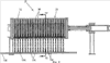 [0034] Фиг.18а представляет модификацию фильтровального пресса Фиг.1. В фильтровальном прессе Фиг.18а продольная ось узла фильтровальной платы ориентирована существенно вертикальным образом. Предпочтительно, в большинстве других отношений фильтровальный пресс Фиг.18а практически подобен фильтровальному прессу Фиг.1.