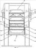 [0017] Фиг.3 представляет сечение фильтровального пресса Фиг. 1 по линии 3-3 Фиг.2, показывающее полости фильтра, определяемые узлами фильтровальных плат. Внутри каждой полости фильтра расположен скребковый узел.