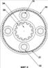 Во втором варианте воплощения настоящего изобретения, показанного на фиг.3, кольцевой корпус 30 имеет дорожку качения и подшипники 31 и включает в себя четыре равноудаленные друг от друга ролика 32, каждый из которых поддерживается сверху верхней дорожкой качения и подшипниками 34 таким же образом, как показано на фиг.1. Ведущий вал 34 расположен в центре корпуса, а шарики 32 ролика выполнены с возможностью вращения вокруг вала 34, но только внутри корпуса и дорожки качения 30, 31.
