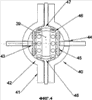 Третий вариант воплощения изобретения, показанный на фиг.4, имеет по существу сферический корпус, состоящий из верхнего полушария и нижнего полушария 42. Сферический ролик 43 размещен в корпусе 40 и имеет осевое отверстие 43, диаметрально сквозное и проходящее горизонтально по одной оси с горизонтальными отверстиями, проходящими через экваториальную область 44 корпуса 40. Корпус 40 включает в себя дорожки качения и подшипники 45, 46 на своей левой и правой стороне. Хотя эти дорожки качения установлены вертикально, они функционируют подобным способом, что и дорожки качения и подшипники 18 и 20 первого варианта воплощения изобретения.