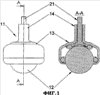 Второй углубленный круглый участок расположен приблизительно в экваториальной области 19 полусферической полости 16 и, следовательно, имеет намного большую ширину или диаметр, чем круглый участок 17.
