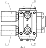 Сущность изобретения иллюстрируется: фиг.1 – функциональная блок-схема автоматического регулятора режимов торможения; фиг.2 – датчик загрузки вагона; фиг.3 – датчик перемещения; фиг.4 – исполнительная часть; фиг.5 – исполнительная часть, вид сверху; фиг.6 – разрез по осям пневмоуправляемых клапанов и датчиков давления; фиг.7 – разрез по осям электромагнитных клапанов; фиг.8 – общий вид автоматического регулятора режимов торможения.