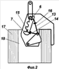Работа с захватом-кантователем осуществляется следующим образом. В исходном положении (см. фиг.1) корпус висит на пальце 11 серьги, расположенном в первой фиксированной впадине 6. Эксцентриковый прижим поднят вверх посредством тяги 13, зацепленной крюком за палец 11 серьги.