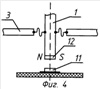 На фиг.1 условно показан электромагнитный преобразователь, содержащий катушку 7, постоянный магнит 8 и магнитопровод (статор) 9. В качестве такого преобразователя возможно применение обратимого вентильного или шагового электродвигателя с постоянными магнитами, обладающего возможностью его работы в режиме генератора.