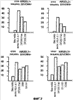Подобным же образом клетки линии Cw4+ 221 EBV не уничтожались трансфицированными по KIR2DL1+ клетками NK, но ингибирование можно было эффективно изменить при использовании либо DF-200, либо фрагмента DF-200 Fab или же обычных моноклональных антител к KIR2DL1 – ЕВ6 или ХА141. Клетки линии Cw3+ 221 EBV также не уничтожались клетками NK KIR2DL2+, но это ингибирование можно было изменить использованием либо антител DF-200, либо их фрагментов DF-200 Fab. Наконец, клетки последней линии Cw3+ 221 EBV не уничтожались клетками NK KIR2DL3*, но это ингибирование можно было изменить использованием либо фрагмента DF-200 Fab, либо обычных моноклональных антител к KIR2DL3 – GL183 или Y249. Результаты приведены на фиг.3.