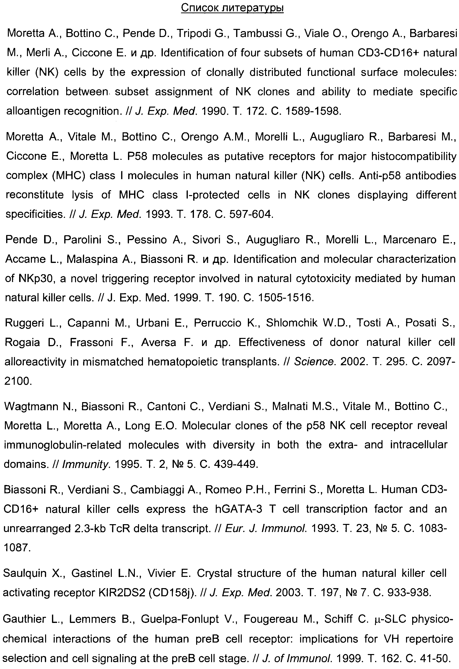 Shin et al., «Monoclonal antibodies with various reactivity to p58 killer inhibitory receptors», Hybridoma, vol.18, No.6, 1999, с.521-527. Moretta et al “A novel surface antigen expressed by a subset of human CD3- CD16+ natural killer cells. Role in cell activation and regulation of cytolytic function., J Exp Med.1990, 171(3), с.695-714. WARREN et al., “Functional analysis of CD 15 8b monoclonal antibodies recognizing the killer Ig-like receptors KIR2DS2, KIR2DL2 и KIR2DL3”, Tissue antigens, vol.55, no. Supplement 1, 2000, с.80-81. RU 2155190 C2, 27.08.2000. WO 2002/024233 A, 28.03.2002.