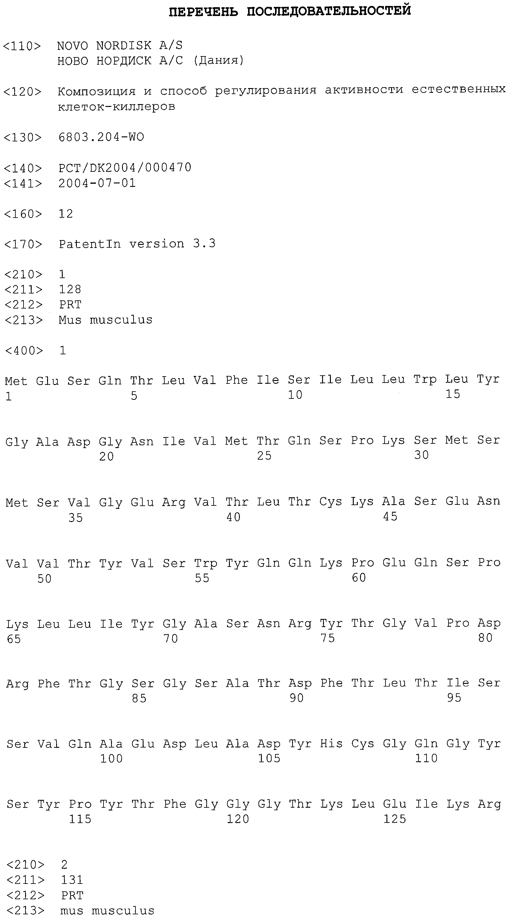 (54) КОМПОЗИЦИЯ И СПОСОБ РЕГУЛИРОВАНИЯ АКТИВНОСТИ ЕСТЕСТВЕННЫХ КЛЕТОК-КИЛЛЕРОВ