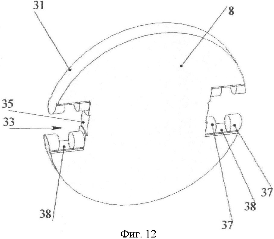 На фиг.11 представлен в изометрии поршень с уплотняющим синхронизирующим элементом в виде накладок.