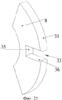 На фиг.22 изображен поршень 8, отличающийся от поршня 8 (фиг.21) наличием уплотняющего синхронизирующего элемента 44 (фиг.13). Для таких поршней 8 в пазах ротора 21 могут быть выполнены канавки для исключения защемления жидкости.