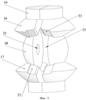 На фиг.20 представлен в изометрии ротор одной ступени машины с вырезом в одну четверть с четырьмя поршнями и разделителем.