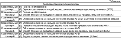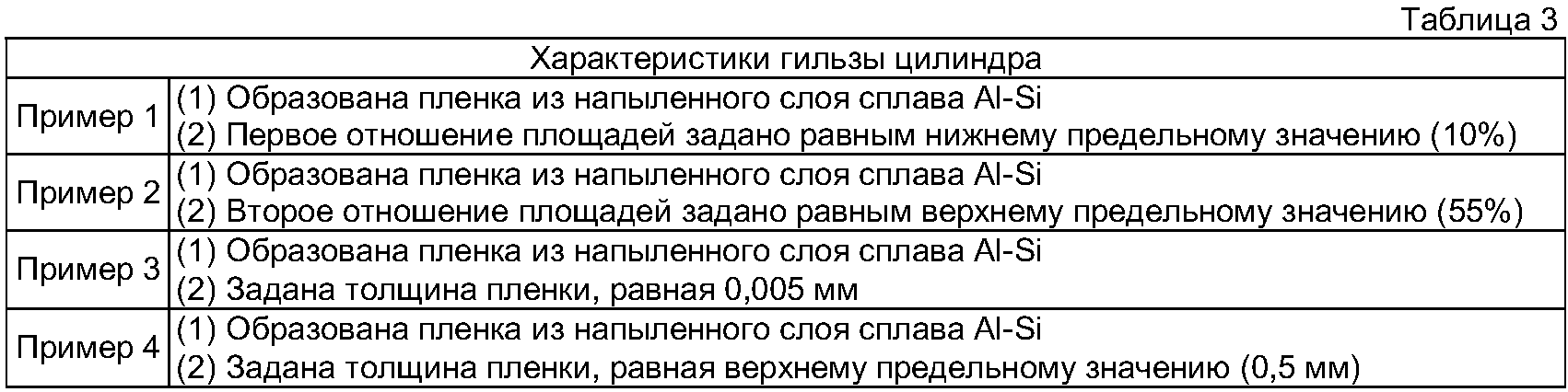 фиг.3 – таблица, в которой приведен один из примеров химического состава литейного чугуна, являющегося материалом гильзы цилиндра, соответствующей первому варианту реализации настоящего изобретения;
