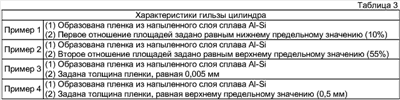 Третий вариант реализации настоящего изобретения осуществлен путем изменения условий создания пленок в гильзе цилиндра, в соответствии с первым вариантом реализации настоящего изобретения, следующим образом. Гильза цилиндра, соответствующая третьему варианту реализации настоящего изобретения, аналогична гильзе, соответствующей первому варианту реализации настоящего изобретения, за исключением следующего.