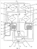 40. Холодильник многофункциональный по п.36, отличающийся тем, что охлаждающая система имеет первый отсек охлаждения, первое устройство принудительной циркуляции воздуха между второй камерой для хранения продуктов и первым отсеком охлаждения, второе устройство принудительной циркуляции воздуха между блоком кондиционирования и первым отсеком охлаждения, первый холодильный агрегат, содержащий распределительный блок, и два, связанных с ним, охлаждающих элемента, первый охлаждающий элемент размещен в первой камере для хранения продуктов, а второй охлаждающий элемент – в первом отсеке охлаждения.