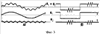 Сущность изобретения поясняется чертежами и диаграммами сигналов, где на фиг.1 приведен пример реализации способа средствами аналоговой техники; на фиг.2 – пример реализации способа средствами цифровой техники и ЭВМ; на фиг.3 – пример временных (сигнал от времени) диаграмм двух возможных форм (а – синусоидальная и б – прямоугольная на участках) сигналов напряжения возбуждения е1+е2, его первой низкочастотной е1 и второй высокочастотной e2 составляющих; на фиг.4 – примеры фазовых (сигнал от сигнала) диаграмм циклов перемагничивания (напряженность от индукции), снятых в схеме фиг.1 при прямоугольных составляющих сигнала возбуждения, показанных на фиг.3, б: