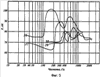 На фиг.3 показаны обобщенные спектральные характеристики сигналов открытопузырных рыб: кеты 1, горбуши 2, сельди 3 и сардины 4, полученные автором экспериментально. По оси ординат приведены уровни звукового давления (Р) сигналов рыб в децибелах относительно 2·10-5 Па. Как видно, спектры сигналов открытопузырных рыб имеют сходную форму и сосредоточены в двух определенных поддиапазонах (интервалах) частот с максимальной энергией соответственно каждому виду рыб. При этом вычисленные значения собственных колебаний плавательного пузыря в точности соответствуют первому частотному поддиапазону с максимальной энергией спектра. Характерное для всех видов рыб распределение спектральной энергии сигналов в двух поддиапазонах частот связано с одновременным участием в звукоообразовании плавательного пузыря и воздушного протока с мышечным сфинктером.