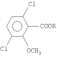 E – расчетная ожидаемая эффективность (%), Х – активность первого вещества (%), Y – активность второго вещества (%). Если фактическое значение гербицидной активности смеси выше расчетного ожидаемого эффекта (E), то активность комбинации является сверхаддитивной (сверхожидаемой), то есть имеет место синергетическое действие. Пример 1. В лабораторный реактор загружают: 55,0 г 2-этилгексилового эфира 2,4-дихлорфеноксиуксусной кислоты (35 г в пересчете на 2,4-Д), 8,5 г диметилоктиламинной соли 3,6-дихлор-0-анисовой кислоты (5 г в пересчете на дикамбу), далее при нагревании до 40-50°С растворяют в 12,0 г керосина и 4,5 г циклогексанона, затем добавляют 20 г ОП-10 и при перемешивании доводят до однородного состояния. После охлаждения до комнатной температуры 1 г полученного концентрата эмульгируют в 99 г воды и выдерживают в отстойнике в течение 4-х часов. Пример 2. Аналогично примеру 1. Отличие состоит в том, что вместо диметилоктиламинной соли дикамбы берут 9,2 г диметилдециламинной соли дикамбы (5,0 г по кислоте). В качестве растворителя используют 12,0 г керосина и 7,8 г диметилформамида. В качестве ПАВ берут 12,0 г ОП-10 и 4,0 г алкилбензолсульфоната кальция (АБСК). Пример 3. Аналогично примеру 1. Отличие состоит в том, что вместо диметилоктиламинной соли дикамбы берут 9,4 г диметиллауриламинной соли дикамбы (5,0 г по кислоте). В качестве растворителя используют 12,0 г керосина и 3,6 г N-метилпирролидона. В качестве ПАВ берут 15,0 г синтанола ДС-10 и 5,0 г АБСК. Пример 4. Аналогично примеру 1. Отличие состоит в том, что вместо диметилоктиламинной соли дикамбы берут 9,7 г диметилалкил- С12-С14– аминной соли дикамбы (5,0 г по кислоте). В качестве растворителя используют 23,0 г ксилола и 5,3 г циклогексанона. В качестве ПАВ берут 5,0 г неонола АФ 9-12 и 2,0 г АБСК. Пример 5. Аналогично примеру 1. Отличие состоит в том, что вместо диметилоктиламинной соли дикамбы берут 8,4 г триэтаноламинной соли дикамбы (5,0 г по кислоте). В качестве растворителя используют 8,8 г нефраса АР 150/330 и 8.8 г спиртов С7-С9. В качестве ПАВ берут 15,0 г неонола АФ 9-12 и 4,0 г АБСК. Пример 6. В реакционную колбу загружают: 55.0 г 2-этилгексилового эфира 2,4-дихлорфеноксиуксусной кислоты (35.0 г в пересчете на 2,4-Д), 11.0 г диметилалкил -С12-С18-аминной соли 3,6-дихлор-0-анисовой кислоты (5,0 г в пересчете на дикамбу), 11,0 г нефраса А150/330, перемешивают в течение 1 часа при температуре 40-50°С, затем добавляют 11.0 г спиртов С7-С9, 8.0 г неонола АФ 9-12 в сочетании с 4,0 г АБСК. Реакционную смесь при нагревании перемешивают в течение 1 часа, доводя до однородного состояния. Далее как в примере 1. Пример 7. Аналогично примеру 6. Отличие состоит в том, что вместо диметилалкил- С12-С18-аминной соли дикамбы вводят 7,2 г диметилэтаноламинную соль дикамбы (5,0 г в пересчете на дикамбу), 13.4 г нефраса А150/330 и 12.4 г бензилового спирта. Пример 8. Аналогично примеру 6. Отличие состоит в том, что вместо диметилалкил- С7-С9-аминной соли дикамбы вводят 8.2 г трипропиламинную соль дикамбы (5,0 г в пересчете на дикамбу) и по 12.4 г нефраса А 150/330 и ксилола. Пример 9. В реакционную колбу загружают: 65,0 г 2-этилгексилового эфира 2,4-дихлорфеноксиуксусной кислоты (42 г в пересчете на 2,4-Д), 9,7 г диметилалкил- C12-С14-аминной соли 3,6-дихлор-0-анисовой кислоты (5,0 г в пересчете на дикамбу), 1,3 г моноэтаноламинной соли 3,6-дихлор-0-анисовой кислоты (1,0 г в пересчете на дикамбу). Реакционную смесь нагревают до 40-50°С и перемешивают, далее добавляют 10 г 