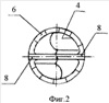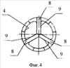 Каждая радиальная часть 8 режущего элемента одним концом соединена с внутренней поверхностью 4, а другим концом соединена с другой (см. фиг.2) или другими радиальными частями (см. фиг.4, на которой показан вариант с тремя радиальными частями 8).