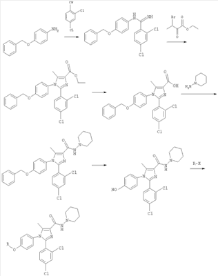 Настоящее изобретение относится к соединениям формулы I, где R1 представляет собой группу R5S(O)2O, в которой R5 представляет собой группу C1-10алкил, возможно замещенную одним или более чем одним фторо; R2a и R2b представляют собой Н или хлоро; R3 представляет собой группу CONHNR7R8, в которой NR7R8 представляет собой пиперидин-1-ил, и R4 представляет собой группу C1-3алкил, и его фармацевтически приемлемые соли. Также изобретение относится к фармацевтической композиции на основе соединения формулы I и применению соединения формулы I в изготовлении лекарств, обладающих активностью в отношении рецептора СВ1. Технический результат: получены новые производные имидазола, обладающие полезными биологическими свойствами. 4 н. и 12 з.п. ф-лы.