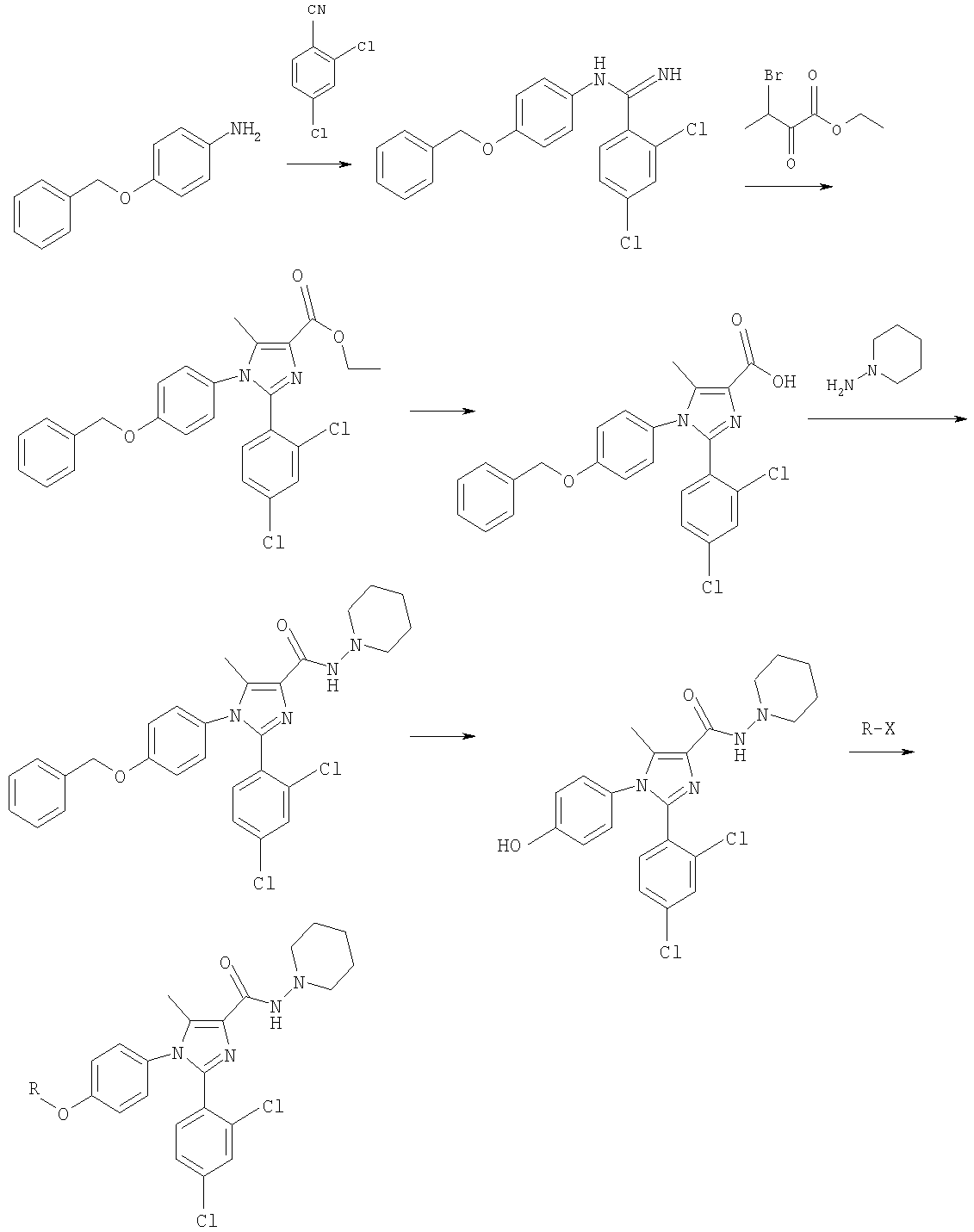 Область изобретения Настоящее изобретение относится к некоторым соединениям 1,2-диарилимидазол-4-карбоксамида формулы I, к способам получения таких соединений, к их применению в лечении ожирения, психиатрических и неврологических расстройств, к способам их терапевтического применения и к фармацевтическим композициям, содержащим их. Предшествующий уровень техники Известно, что некоторые модуляторы CB1 (известные как антагонисты или обратные агонисты) полезны при лечении ожирения, психиатрических и неврологических расстройств (WO 01/70700 и ЕР 656354). В WO 04/60367 и в WO 2004/099130 раскрыто, что некоторые диарилимидазолы и триазолы полезны в качестве ингибиторов СОХ-1, полезных при лечении воспаления. Соединения, которые приведены в качестве примеров в этих заявках, не заявлены в формуле настоящего изобретения. В DD 140966 раскрыто, что некоторые анилиды имидазолкарбоновой кислоты полезны в качестве регуляторов роста растений. Соединения, которые приведены в качестве примеров в этих заявках, не заявлены в формуле настоящего изобретения. В WO 03/007887 и WO 03/075660 раскрыты некоторые 4,5-диарилимидазол-2-карбоксамиды в качестве модуляторов CB1. В WO 03/27076 и WO 03/63781 раскрыты некоторые 1,2-диарилимидазол-4-карбоксамиды, которые являются модуляторами СB1. Соединения, которые приведены в качестве примеров в этих заявках, не заявлены в формуле настоящего изобретения. В WO 03/40107 раскрыты некоторые 1,2-диарилимидазол-4-карбоксамиды, которые полезны при лечении ожирения и расстройств, связанных с ожирением. Однако существует необходимость в модуляторах СВ1 с улучшенными физико-химическими свойствами и/или DMPK (метаболическими и фармакокинетическими от англ. drug metabolism and pharmacokinetic) свойствами, и/или фармакодинамическими свойствами. Описание изобретения Изобретение относится к соединению формулы (I)