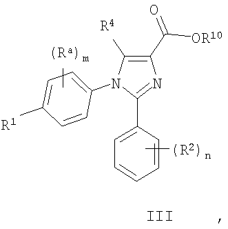 в котором R2, R3, R4, Rа, m и n являются такими, как определено выше, с группой R1A-X, в которой R1A представляет собой такую группу, что R1AO представляет собой R1, и Х представляет собой уходящую группу, например галогено, при температуре в интервале от -25°С до 150°С в присутствии инертного растворителя, например дихлорметана, и возможно в присутствии основания, например триэтиламина или пиридина. Соединения формулы I, в которых Rа, R1, R2, R4, m и n являются такими, как определено выше, и R3 представляет собой группу X-Y-NR7R8, в которой Х представляет собой СО, a Y, R7 и R8 являются такими, как определено выше, могут быть получены путем взаимодействия соединения формулы III