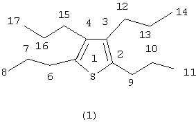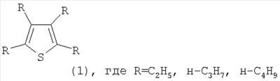Известным способом не могут быть получены 2,3,4,5-тетраалкилтиофены (1).