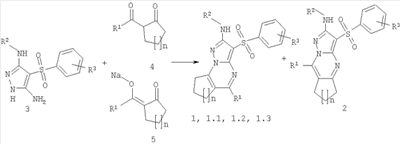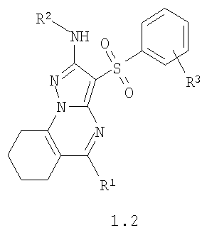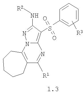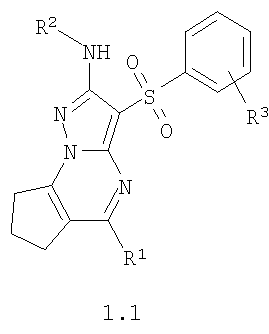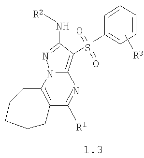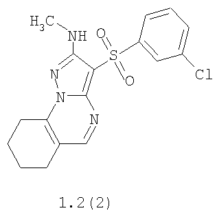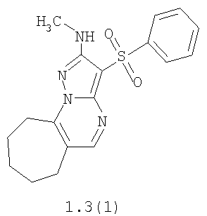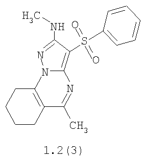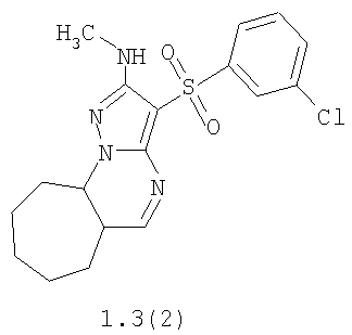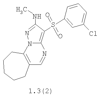 где R1, R2 и R3 имеют вышеуказанное значение. Более предпочтительными соединениями общей формулы 1.1, 1.2 и 1.3 являются 2-метиламино-3-фенилсульфонил-7,8-дигидро-6Н-циклопента[е]пиразоло[1,5-а]пиримидин 1.1(1), 2-метиламино-3-(3-хлорфенилсульфонил)-7,8-дигидро-6Н-циклопента[е]пиразоло[1,5-а]пиримидин 1.1(2), 5-метил-2-метиламино-3-фенилсульфонил-7,8-дигидро-6Н-циклопента[е]пиразоло[1,5-а]пиримидин 1.1 (3), 5-метил-2-метиламино-3-(3-хлорфенилсульфонил)-7,8-дигидро-6Н-циклопента[е]пиразоло[1,5-а]пиримидин 1.1 (4), 2-метиламино-3-фенилсульфонил-6,7,8,9-тетрагидроциклогексано[е]пиразоло[1,5-а]пиримидин 1.2(1), 2-метиламино-3-(3-хлорфенилсульфонил)-6,7,8,9-тетрагидроциклогексано[е]пиразоло[1,5-а]пиримидин 1.2(2), 5-метил-2-метиламино-3-фенилсульфонил-6,7,8,9-тетрагидроциклогексано[е]пиразоло[1,5-а] пиримидин 1.2(3), 5-метил-2-метиламино-3-(3-фторфенилсульфонил)-6,7,8,9-тетрагидроциклогексано[е]пиразоло[1,5-а]пиримидин 1.2(4), 5-метил-2-метиламино-3-(3-хлорфенилсульфонил)-6,7,8,9-тетрагидроциклогексано[е]пиразоло[1,5-а]пиримидин 1.2(5), 5-метил-2-метиламино-3-(3-хлор-4-фторфенилсульфонил)-6,7,8,9-тетрагидроциклогексано[е]пиразоло[1,5-а]пиримидин 1.2(6), 2-метиламино-3-фенилсульфонил-7,8,9,10-тетрагидро-6Н-циклогепта[е]пиразоло[1,5-а]пиримидин 1-3(1) и 2-метиламино-3-(3-хлорфенилсульфонил)-7,8,9,10-тетрагидро-6Н-циклогепта[е]пиразоло[1,5-а]пиримидин 1.3(2).