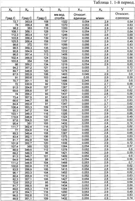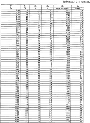 Анализ работы агломашины показывает, что с течением времени коэффициенты параметров, влияющих на величину относительного выхода агломерата, изменяются, становится другим вид зависимости, кроме того, параметры, влияющие на относительный выход агломерата, могут исчезать из уравнения связи и вместо них могут появляться другие параметры. Таким образом, уравнение связи может видоизменяться.