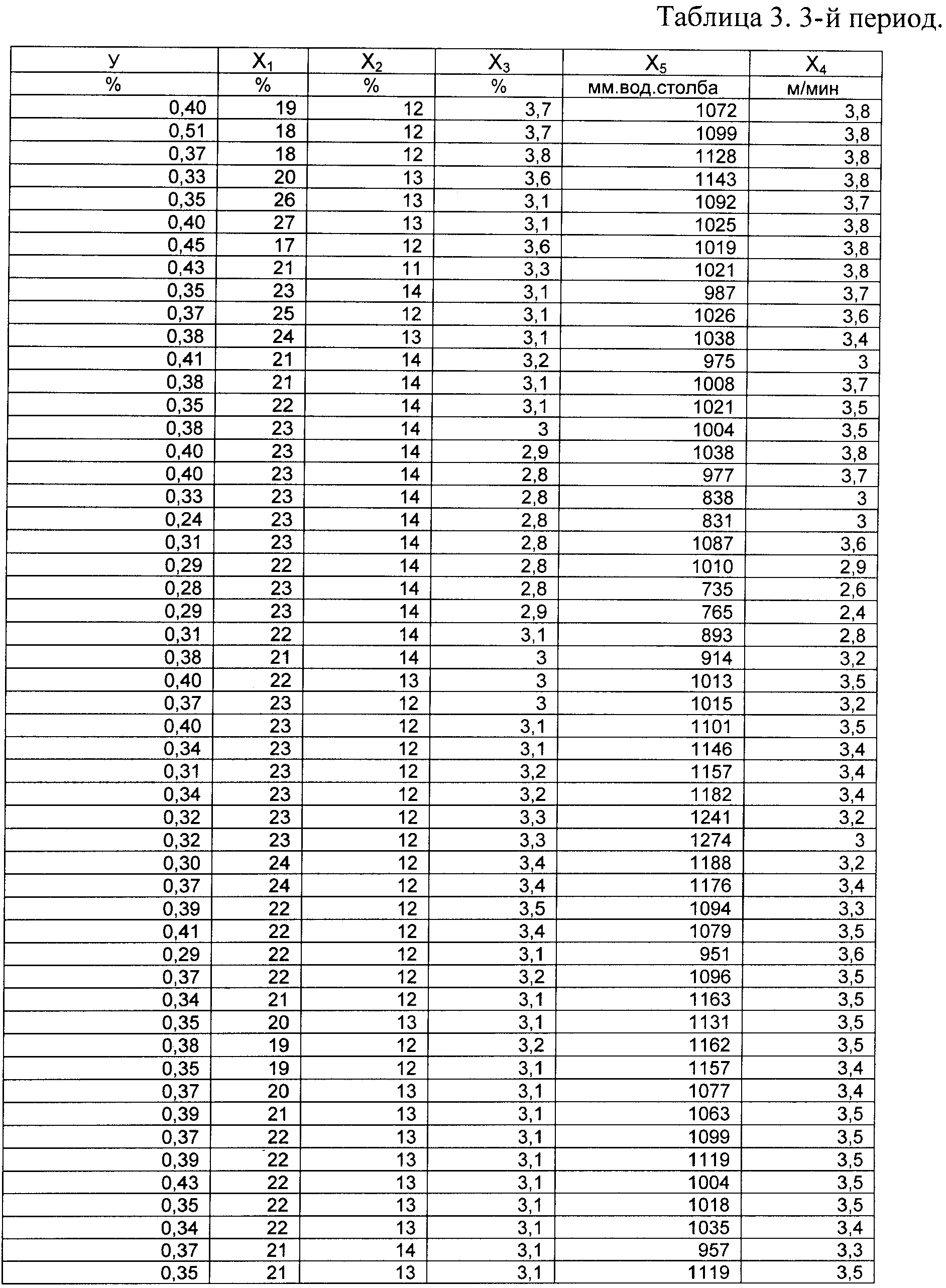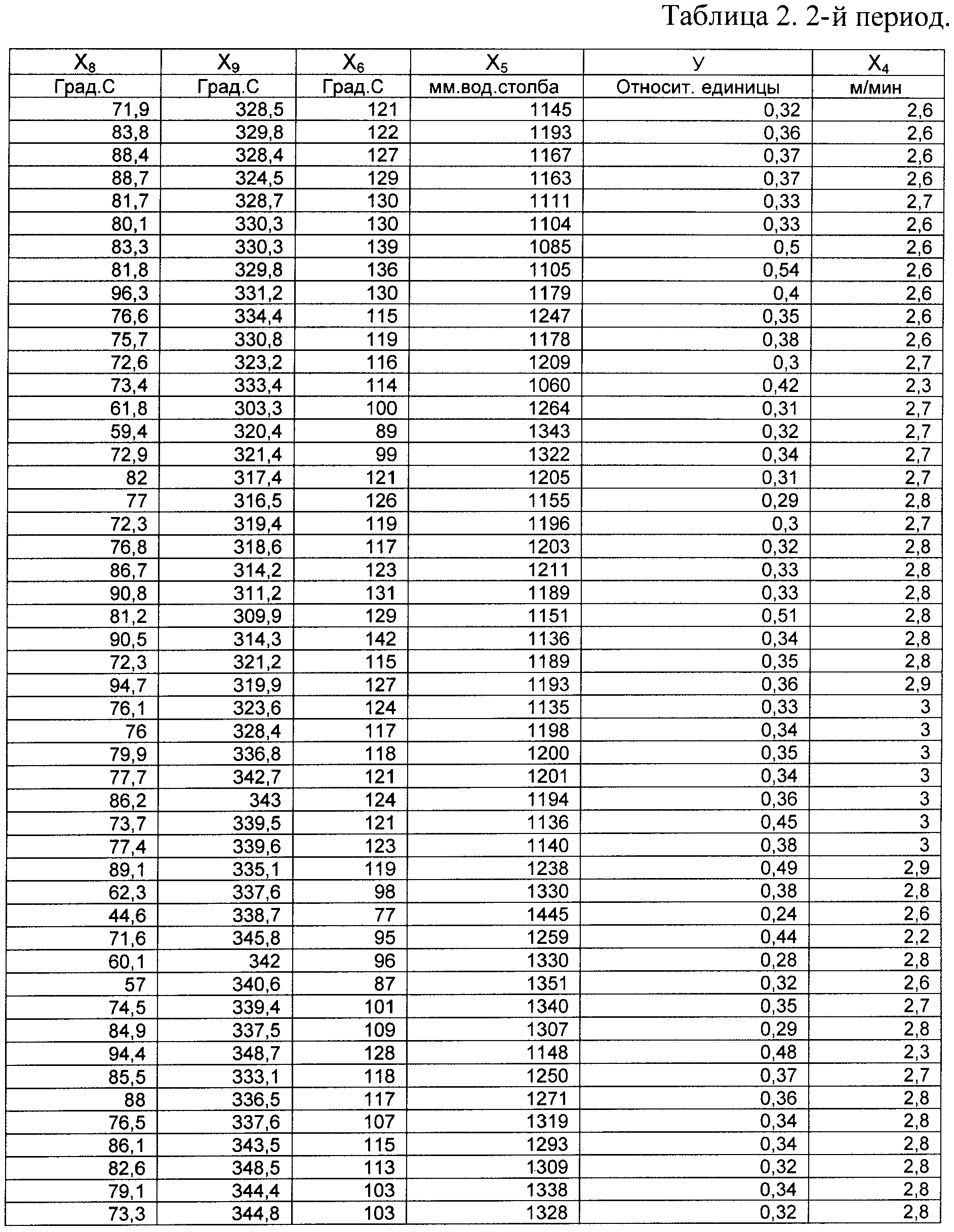Технологический параметр процесса относят к значимому, если коэффициент парной корреляции между ним и относительным выходом агломерата составляет не менее 0,2.