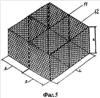 На фиг.1-8 изображена каменно-земляная плотина на скальном основании с супесчаным ядром и с разделительным слоем в виде противосуффозионного элемента, пример 1, а именно: на фиг.1 – показан поперечный разрез плотины; на фиг.2 – конструктивная схема коробчатой с двумя ячейками корзины из проволочной сетки; на фиг.3 – схема шестиугольных ячеек сетки; на фиг.4 – схема коробчатой гибкой оболочки; на фиг.5 – конструктивная схема коробчатой с четырьмя ячейками корзины из проволочной сетки; на фиг.6 – развертка корзины с четырьмя ячейками (перегородки изготовляются отдельно и устанавливаются по месту); на фиг.7 – схема возведения габионной стенки плотины и ее противосуффозионного элемента; на фиг.8 – разрез А-А на фиг.1, принципиальная схема работы противосуффозионного элемента и его превращения естественным путем в противофильтрационный элемент.