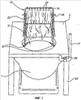 На фиг.1-3 изображено туалетное устройство по настоящему изобретению, включающее модифицированные писсуары. На фиг.1 туалетное устройство включает писсуар, имеющий стороны, образованные листом 22 (например, из мочеустойчивого материала или пластиковый лист), его нижние края прикреплены к платформе 2, а его верхние края прикреплены к промывающей трубке 16. Платформа 2 имеет отверстие 3, и платформа 2 с отверстием 3 размещена на унитазе 1. Ножки 20 поддерживают платформу над унитазом 1. На фиг.1 видно, что трубка 16 включает разбрызгиватели 24 для промывания писсуара 4с и одну или более ручек 26 для его поднятия, тем самым образуя его стенки. Устройство включает впускную трубу 17 для подачи воды и может иметь клапан 28 и/или автоматический клапан 30 или то и другое. Автоматический клапан 30 описан ниже со ссылкой на фиг.4.