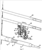 Фиг.7 иллюстрирует другой вариант осуществления средств обнаружения препятствий, при котором элемент 21 закреплен на поперечном ребре жесткости 29 стойкой 24. В иллюстрируемом варианте осуществления стойка 24 включает в себя две симметричные опоры 34, на каждой из которых имеется вогнутая часть, которая может зажимать поперечное ребро жесткости 29. В то же время обе опоры 34 зажимают пластину 35. На пластине 35, как видно на Фиг.7, имеется два резьбовых стержня 37; функцией этих резьбовых стержней является фиксация крепежного узла 38. Видно, что узел 38, на котором закреплен фотоэлемент 21, имеет продолговатую прорезь 39, которая может быть надета на резьбовой стержень 37. Такое устройство позволяет регулировать положение фотоэлемента 21 по отношению к элементу 13. Разумеется, другая стойка, симметричная описанной, может быть расположена на другой оконечности поперечного ребра жесткости 29.