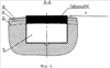 На фиг.4 показан другой фрагмент фиг.2 в увеличенном масштабе. Это возможный вариант установки резца 15, когда отверстие по глубине выполнено на минимуме, а поликристаллический алмазный элемент имеет максимальную высоту. В этом случае торцевую поверхность элемента необходимо очень долго шлифовать по алмазной вершине для получения максимально допустимого диаметра (в нашем случае 215,9 мм). При этом во время шлифовки не исключено появление трещин и отслоение алмазного слоя.