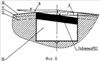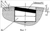 На фиг.6 позицией 17 показана поверхность элемента PDC, не подлежащая обработке при его установке в отверстии. На фиг.7 показан предпочтительный случай, когда при установке резца его самая высокая часть совпадает с линией 10, а утопленная часть находится на уровне, не ниже линии 12. На фиг.8 показана измененная схема нагружения таблетки PDC от воздействия реакции со стороны породы стенки скважины, обусловленная наклоном поверхности резца. Позицией 18 на фиг.7 и 8 обозначен предлагаемый элемент PDC с наклоном в сторону вращения долота.