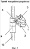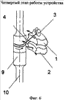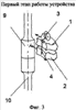 На фиг.1 показан продольный разрез устройства; на фиг.2 – вид сверху на фиг.1; на фиг.3 изображен первый этап работы устройства; на фиг.4 – второй этап работы устройства; на фиг.5 – третий этап работы; на фиг.6 – четвертый этап работы устройства.