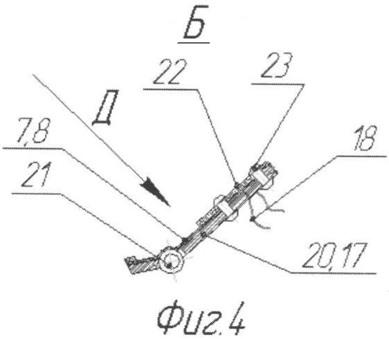 Заявляемые изобретения представлены на следующих чертежах: на фиг.1 схематически показано заявляемое устройство в закрытом положении во время спуска в техническую колонну; на фиг.2 – устройство с раскрытым барьером в месте, выбранном для установки цементного моста; на фиг.3 – вид А на фиг.1; на фиг.4 – вид Б на фиг.2; на фиг.5 – вид Д на фиг.4; на фиг.6 – вид В на фиг.2; на фиг.7 – вид Г на фиг.2.