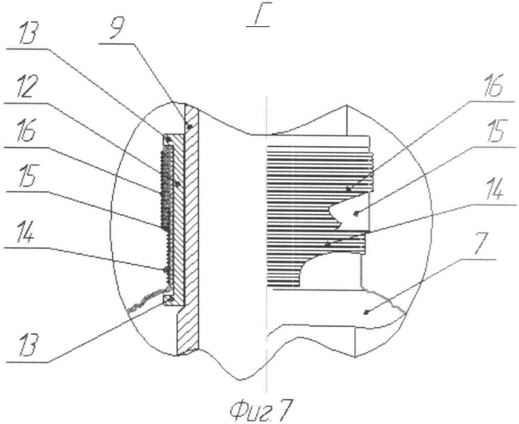 Снаружи оболочка 7 укрыта закрепленными на ней многозвенными лентами 17, которые связаны между собой в закрытом положении 5 (фиг.3) при помощи поволоки 18 или любых других вязальных материалов, скрутками 19. При этом проволока 18 для защиты от повреждений во время спуска в скважину уложена между пластинами 20 (фиг.4, 5), составляющими многозвенные ленты 17, соединенными между собой шарнирами 21, и оболочкой 7, которая прижимается к многозвенным лентам 17 внутренними пластинами 22. При этом пластины 22 прижаты к пластинам 20 заклепками 23 или любым другим способом (например, болтами).