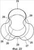 8. Внутренняя образующая отсекает в наружной несколько изолированных замкнутых лоскутов (площадей) сферической поверхности, ограниченных участками образующих, заключенными между точками 29 их взаимного касания (Фиг.22) при любом взаимосвязанном повороте конусно-винтовых элементов.