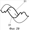4. Одна замкнутая винтообразно пузыревидная полость формы 30 (Фиг.27) может образовываться только в пределах одного полного оборота навивки винтовой рабочей поверхности наружного конусно-винтового элемента, при этом навивка винтовой рабочей поверхности внутреннего конусно-винтового элемента включает n2/n1 оборотов.