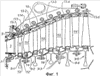 Пара крюков 113-1-1 и 113-1-2 статора удерживают ниже по потоку крюк 121-1 корпуса и торец уплотняющего сектора 105′, который располагается выше по потоку рядом со ступенью 111-1 распределительного устройства. Для статора 113-2 пара крюков удерживает узел, содержащий соответствующий крюк 121, нижний по потоку торец сектора 113′-1 кольца и пластину 115-1 истираемого материала.