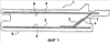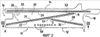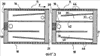 При рассмотрении фиг. 2 и 3, в частности, можно указать на еще один отличительный признак настоящего изобретения, касающийся охлаждения радиальных сторон 20, 21 воздухом, поступающим из полости 35 циркуляции охлаждающего воздуха. Как видно из чертежей, каждый сектор содержит выпускные воздушные каналы 50, выполненные между полостью 40 и, по меньшей мере, одной радиальной стороной сектора. Эти каналы выходят на радиальную сторону 20 между ее внутренним бортом (горячая сторона) и упомянутыми первой и второй пластинами 27, 28. Выполнение этих выпускных воздушных каналов возможно благодаря расположению обеих пластин в форме шеврона. Каналы расположены в ряд, параллельный оси кольца. В примере, показанном на фиг.3, все они выполнены перпендикулярно к радиальной стороне. В примере, показанном на фиг.6, некоторые каналы 50 выполнены перпендикулярно к радиальной стороне, в то время как другие каналы, находящиеся на концах упомянутого ряда или, по меньшей мере, на одном из этих концов, выполнены под углом и расходятся относительно первых каналов, в данном случае в направлении от полости к радиальной стороне. Угол между расходящимися каналами может составлять от 10 до 120°. В некоторых случаях можно выполнять каналы под углом сходящимися в другом направлении. Согласно варианту, показанному на фиг.7, параллельные каналы образуют угол относительно направления, перпендикулярного к радиальной стороне. При этом угол выбирают таким, чтобы воздух выбрасывался под углом к задней стороне кольца. В варианте, показанном на фиг.8, параллельные каналы образуют угол относительно направления, перпендикулярного к радиальной стороне. При этом угол выбирают таким, чтобы воздух выбрасывался под углом к передней стороне кольца.