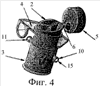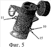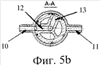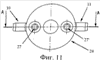 В третьем варианте выполнения (фиг.9-15) первый и второй поршни (20, 21) неподвижно установлены напротив друг друга внутри полого цилиндрического корпуса (22), выполненного с возможностью перемещения, как показано на фиг.9. Указанный корпус (22) состоит из двух одинаковых цилиндрических частей (23, 23′), собранных встык друг с другом. Внутри указанного корпуса (22) посередине между двумя цилиндрическими частями (23, 23′) установлен диск (24) (фиг.10а, 11, 11а), имеющий впускное и выпускное отверстия (10, 11), расположенные предпочтительно сбоку под 180° друг к другу, и отверстие (25) на его нижней части (фиг.9а). В результате подобной компоновки образуется первая и вторая камеры (26, 26′) (фиг.12b, 14b). Диск (24) выполнен с возможностью углового перемещения относительно корпуса (22), образованного частями (23, 23′).