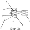 Как показано на фиг.3 и фиг.3а, вал (6) оканчивается сферическим концом (8), вставленным в гнездо (9) поршня с обеспечением преобразования углового перемещения ротора (5) в реверсивное линейное и угловое перемещение поршня (2). Поршень (2) совершает возвратно-поступательное перемещение скольжения внутри цилиндра (3) с одновременным реверсивным угловым перемещением.